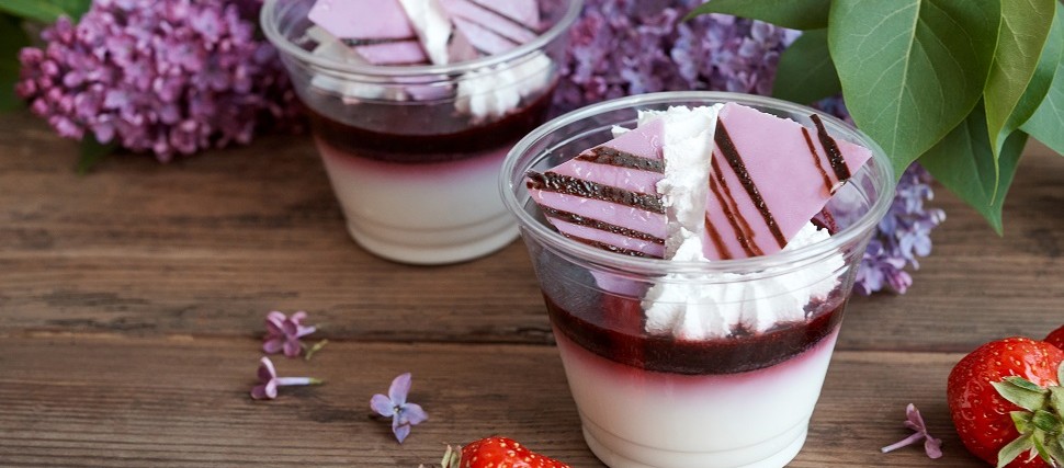 4. «Панакота» - легкий, неначе хмаринка, молочний десерт в якому вибухова кількість кальцію. У його складі збиті вершки із сметаною та згущеним молоком, що зверху политі ягідним джемом.