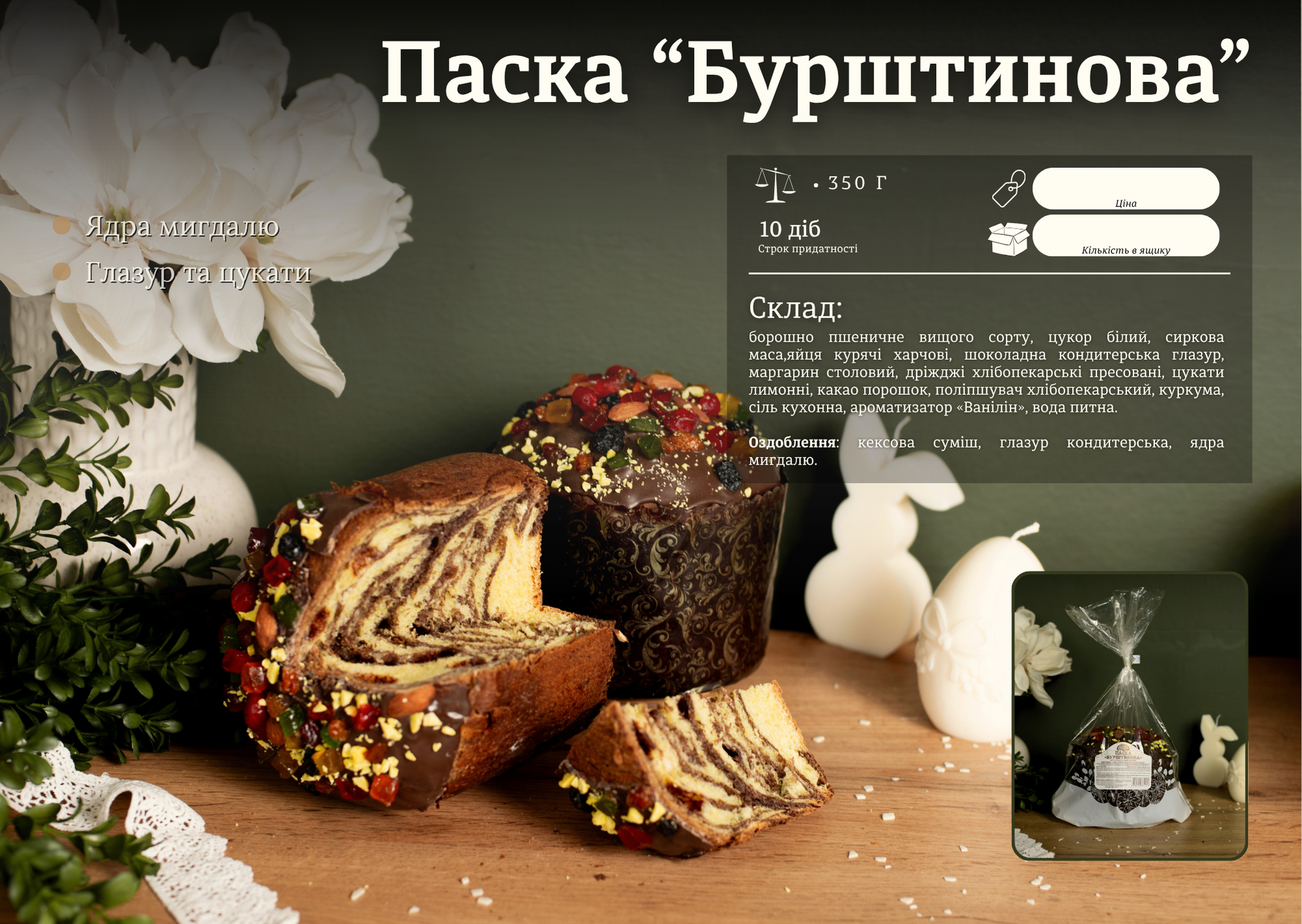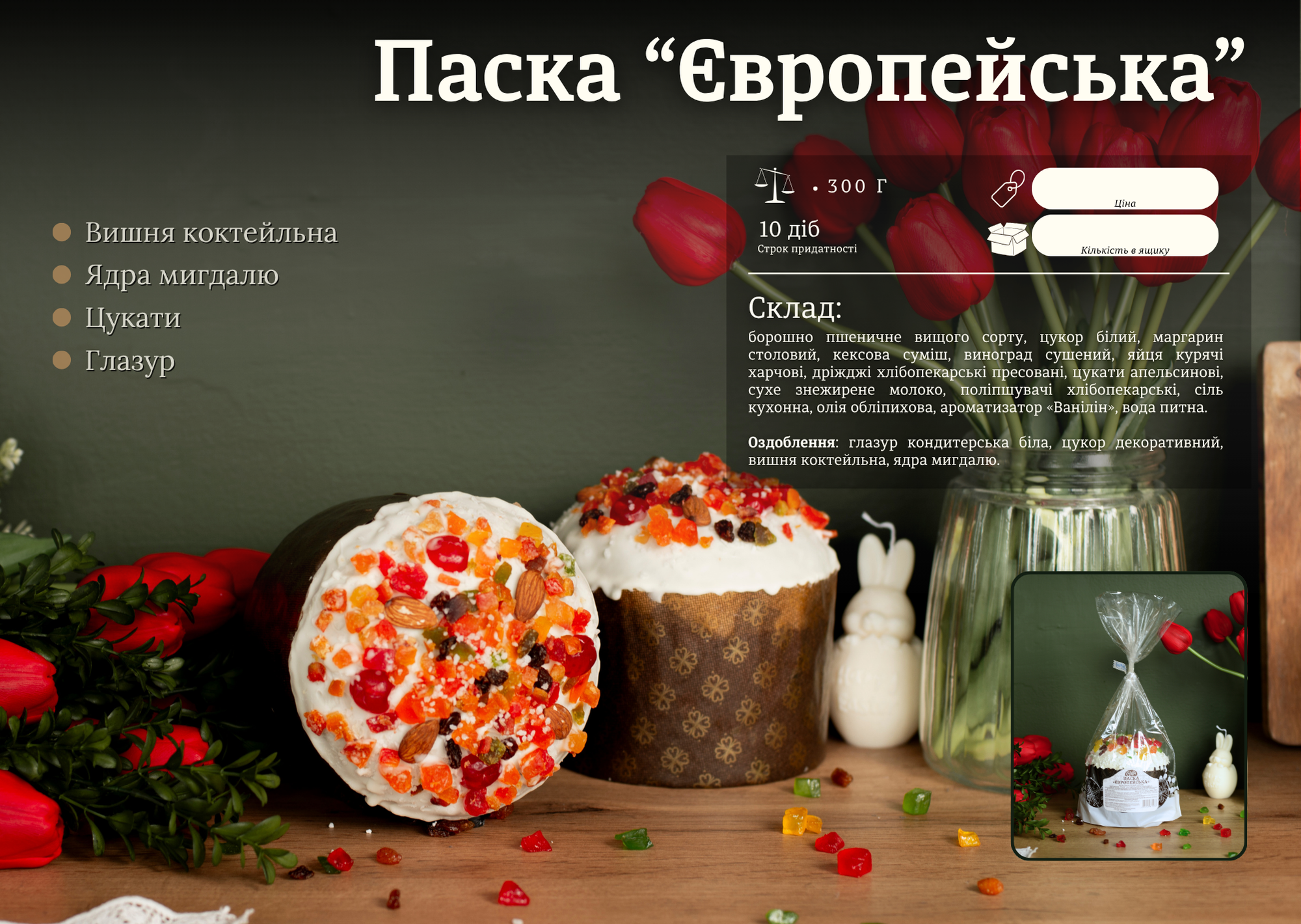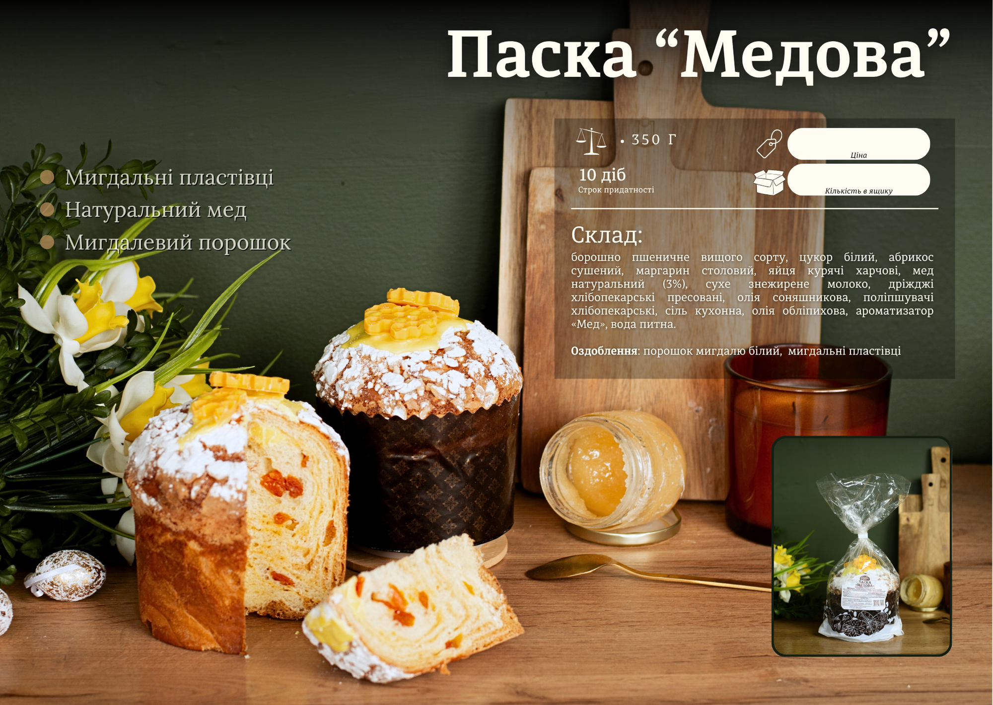 Ми дбаємо про кожну деталь — від рецептури до оформлення, щоб кожна паска була не лише смачною, а й по-справжньому святковою.