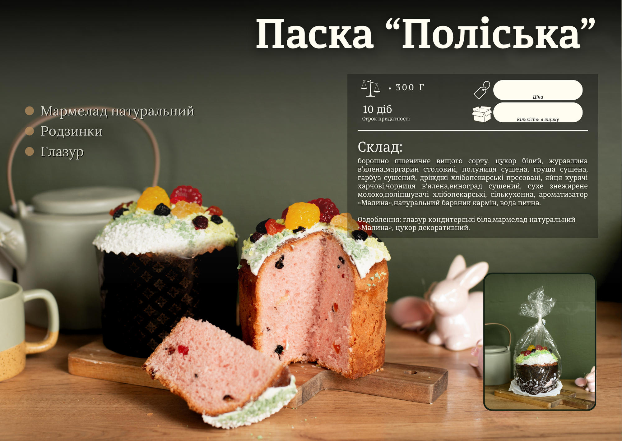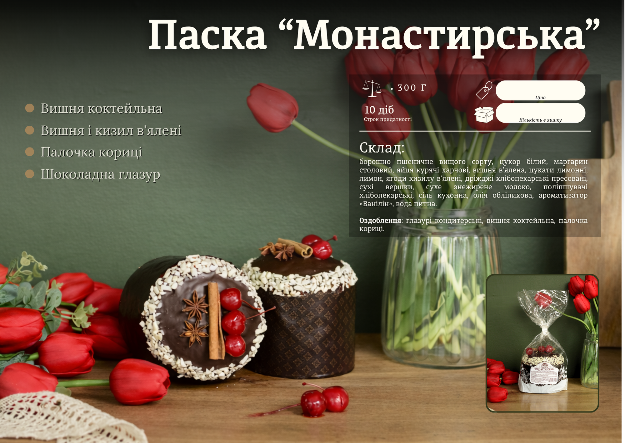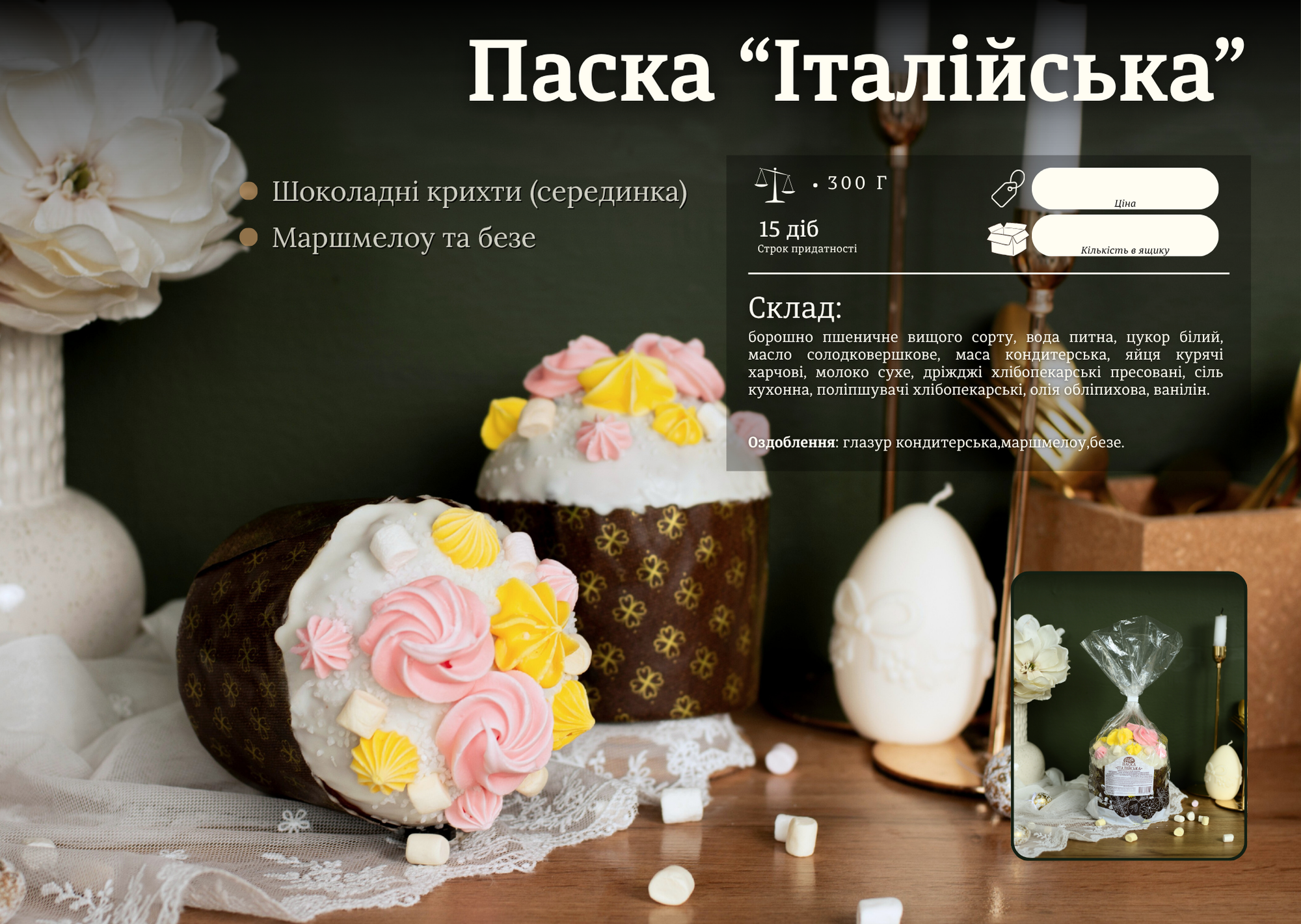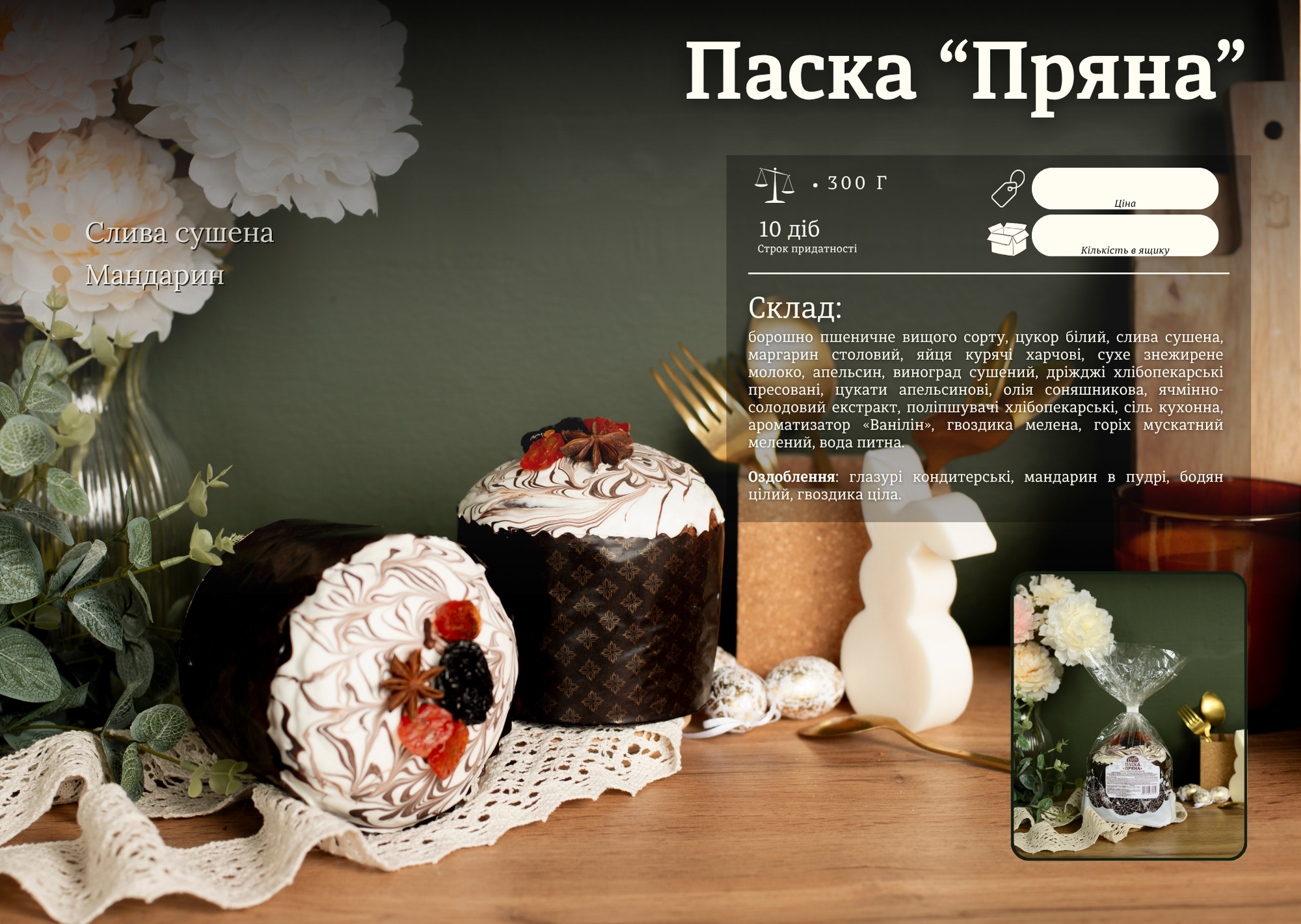 Ми дбаємо про кожну деталь — від рецептури до оформлення, щоб кожна паска була не лише смачною, а й по-справжньому святковою.
