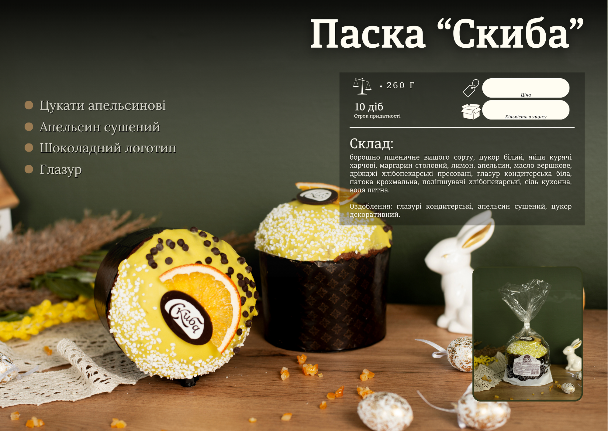 ТМ «Скиба» щороку з любов’ю створює великодній асортимент, поєднуючи традиції української випічки з сучасними стандартами якості та новими смаками. Для нас це не просто продукція — це частина святкової атмосфери, яку ми допомагаємо створити у кожній оселі.