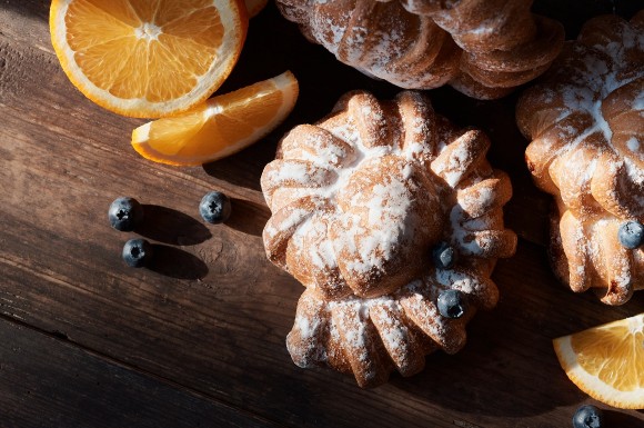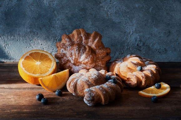Борошно пшеничне вищого сорту, маргарин столовий, консерванти, наповнювач ягідний «Чорниця», цукор, апельсин, цукрова пудра, дріжджі, молоко сухе, сіль, ароматизатор «Ванілін», вода.