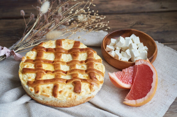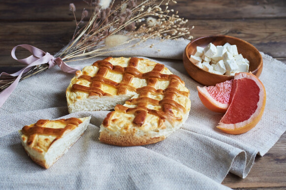 Продукт сирний кисломолочний (48,3%), борошно пшеничне вищого сорту, цукор, яйця, маргарин, дріжджі, сіль, ароматизатор “Ванілін”, поліпшувач хлібопекарський, вода.