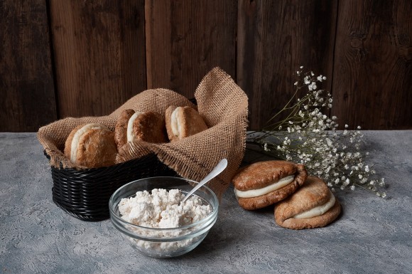 Сиркова маса, борошно пшеничне вищого сорту, масло, яйця курячі, цукор, сметана, сода, сіль, ароматизатор «Ванілін», вода.