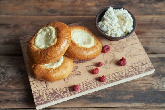 Класичні здобні булочки з ніжним сиром та родзинками стануть в нагоді для ситного перекусу, або смачного чаювання в родинному колі.