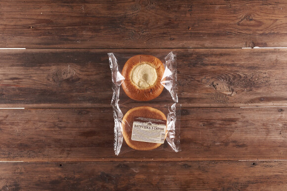 Борошно пшеничне вищого cорту, дріжджі, сіль, маргарин, цукор, яйця курячі, ванілін, родзинки, продукт молоковмісний сирний солодкий.